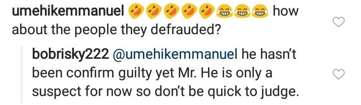A follower came to the comment section of his post and asked him what will be the faith of those Marley has allegedly defrauded. Bob responded by telling him that the singer is innocent, until proven guilty in the court of law.
